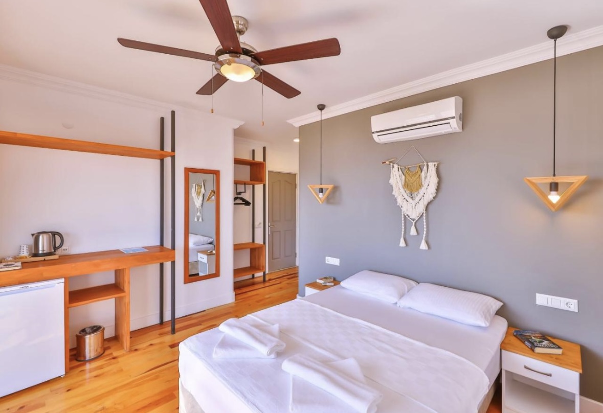 Нас ждут 3 комнаты в красивейшем отеле с видом на море. Очень эстетично для фотографий. В одной комнате 2 человека, во второй 2 человека и в третьей 4 человека. Учтите пожалуйста этот момент! В комнатах живём по 2 человека, спать нужно будем с кем-то на одной кровати. Обычно делаю шляпу, чтобы определиться, кто с кем живёт. В отеле бассейн с красивым видом на весь Каш, располагается прямо в центре каша, до пляжа 200 метров. Есть фантастическая терасса для занятий спортом и йогой. Завтраки проходят на крыше с видом на весь Каш. Каждая комната С ВИДОМ НА МОРЕ!